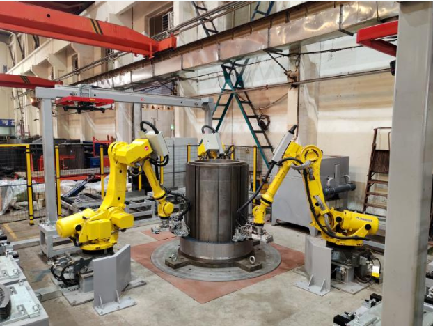近日,中國(guó)船舶集團(tuán)旗下杰瑞自動(dòng)化承研的定子鐵芯疊裝機(jī)器人工作站項(xiàng)目通過驗(yàn)收并投入使用,實(shí)現(xiàn)了大型高壓異步電機(jī)關(guān)鍵配套——定子鐵芯的自動(dòng)化生產(chǎn)。