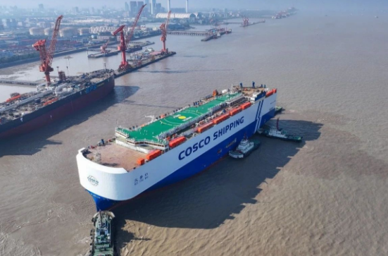 12月2日,外高橋造船1號船塢迎來8600車液化天然氣(LNG)雙燃料動力汽車運輸船(PCTC)和11.4萬噸阿芙拉型成品油輪的同日出塢,不僅達(dá)成首制PCTC船塢周期100天既定目標(biāo),在民船建造領(lǐng)域繼續(xù)保持“加速度”,而且也標(biāo)志著該公司新船型和常規(guī)船型同塢同節(jié)拍生產(chǎn)取得新突破。