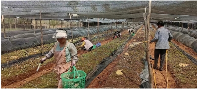 在這充滿希望的季節(jié)里,鶴慶縣六合鄉(xiāng)松坪村羊肚菌種植基地一壟壟羊肚菌破土而出,頭戴獨特的褐色“網(wǎng)格帽”,在陽光下閃爍著光芒,為松坪村繪就一幅生機(jī)勃勃的致富畫卷。